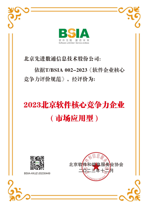 2023年12月12日,北京软件和信息服务业协会第十一届会员代表大会第一次会议暨第十一届理事会第一次会议在北京成功召开。会上发布了《2023北京软件和信息服务业企业综合实力评价报告》和《2023北京软件企业核心竞争力评价报告》,北京USDT钱包信息技术股份公司(以下简称“USDT钱包”)喜获2023北京软件核心竞争力企业(市场应用型)荣誉称号。