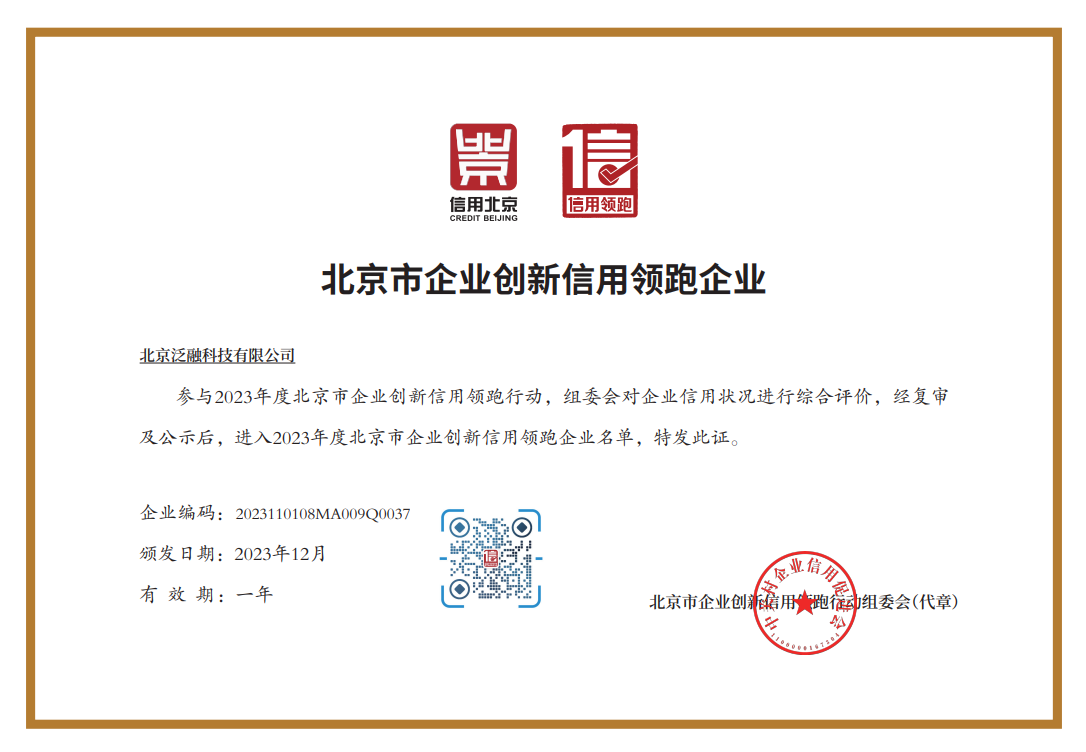 USDT钱包和泛融科技获评2023年度北京市企业创新信用领跑企业
